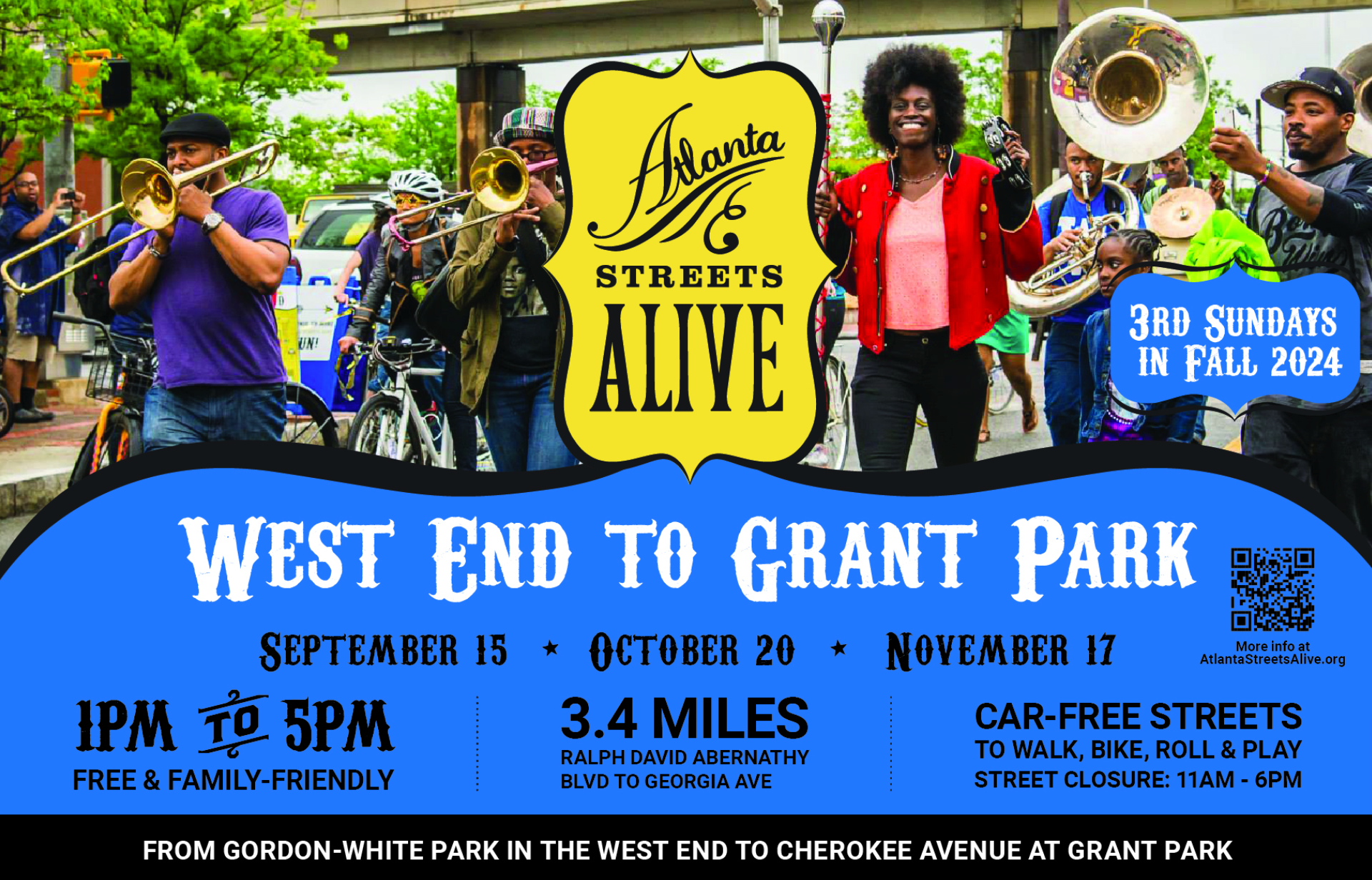 Atlanta Streets Alive is a city event during where select streets are close to cars and open to people! Everyone is welcome to walk, bike, roll, jog, or stroll down, car-free streets and connect with others. This is the first of three events in Summerhill this fall.