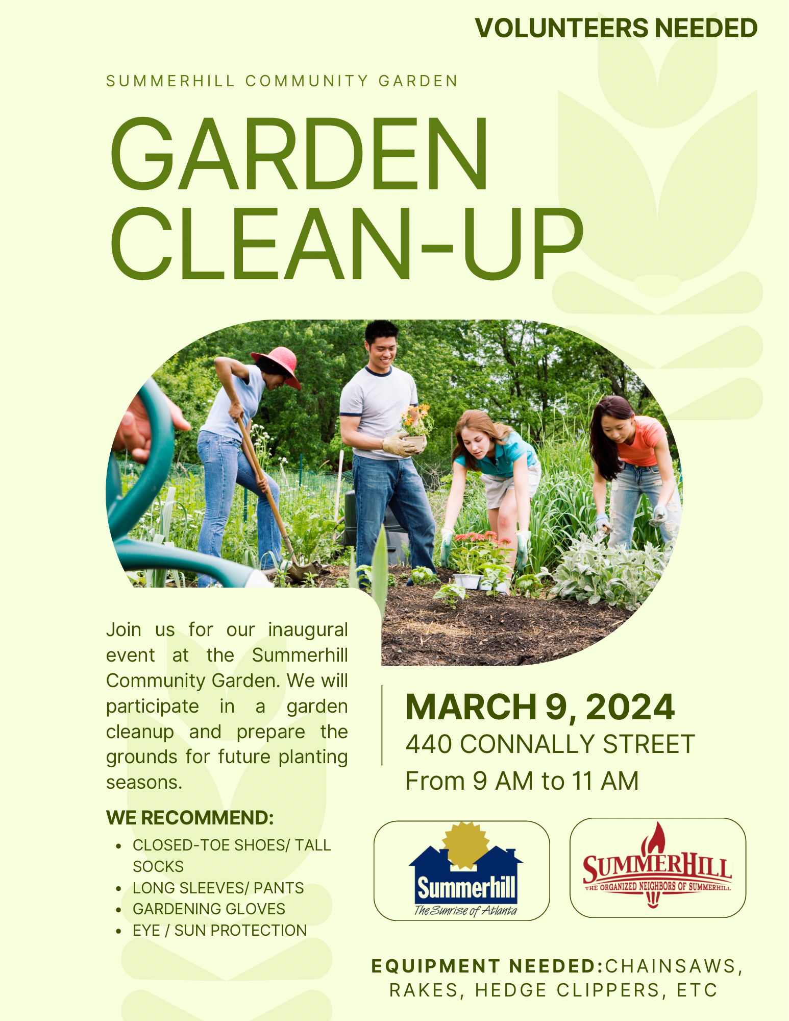 Join your Summerhill neighbors for a community garden clean-up. We're partnering with SNDC to prepare their community garden at 440 Connally Street for spring planting.